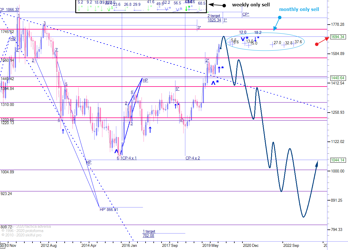 По золоту интересные ощущения. Ниже нынешнего диапазона у меня уровней нет (месячный разве что один) ощущения без сопротивления уровней. Либо цен там в ближайшие годы мы уже не увидим либо произойдёт нечто интересное что обвалит цену ( в чём я глубоко сомневаюсь) + серия даун ластиков заканчивается: